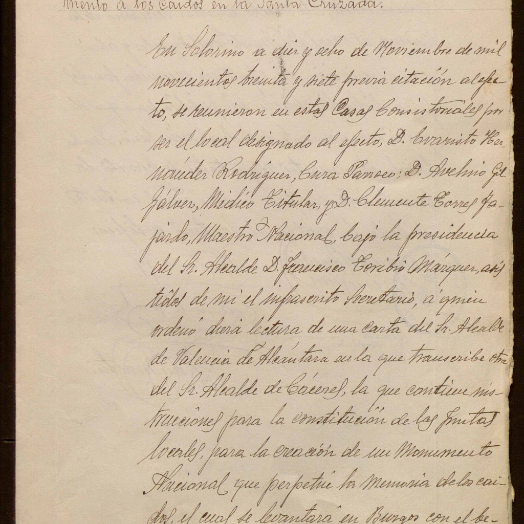 Acta de constitución de la Junta Local Pro-Monumento a los caídos en la Santa Cruzada.