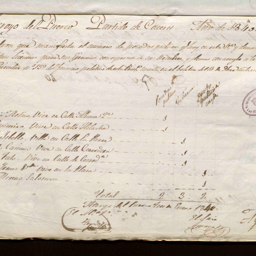 Padrón que manifiesta el número de posadas y demás objetos que necesiten de licencia para su ejecución en la villa de Arroyo del Puerco.