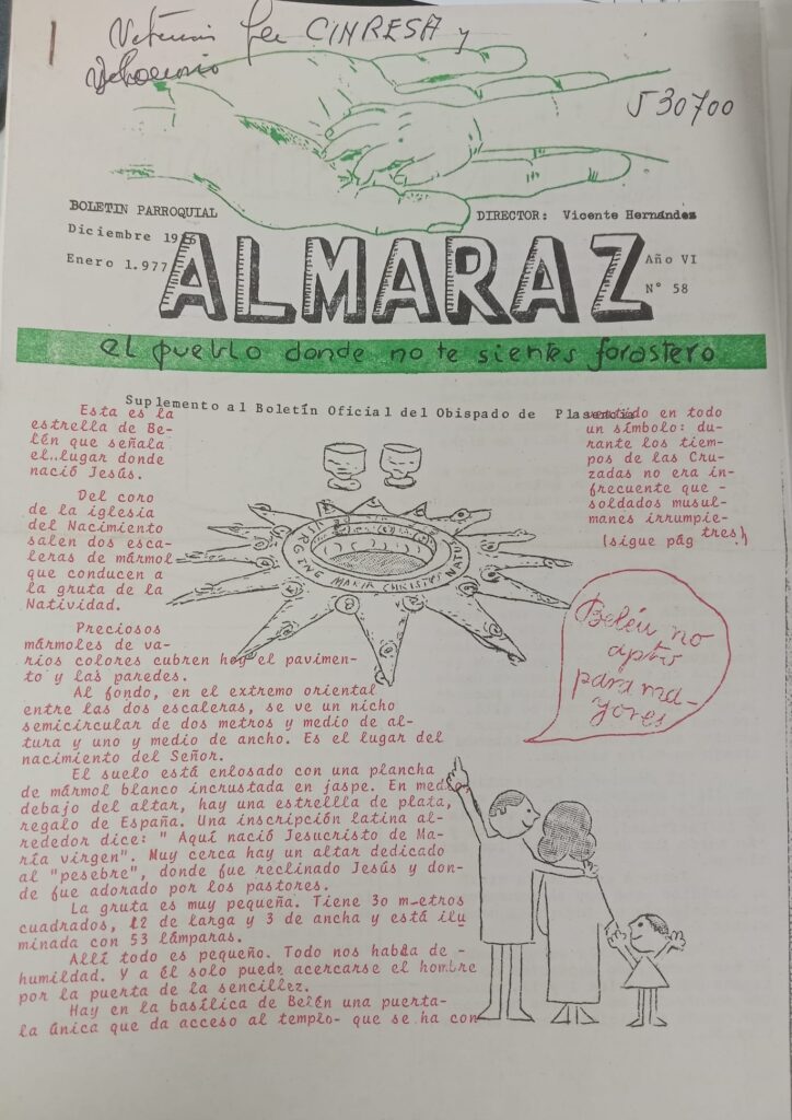 Boletín Parroquial nº 58. Diciembre de 1976 a enero de 1977: “Almaraz el pueblo donde no te sietes forastero”.