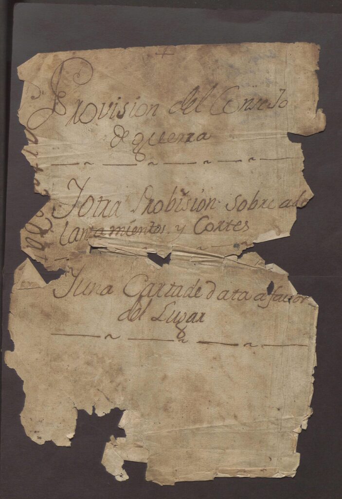 Diferentes disposiciones cosidas. Provisión del Consejo de Guerra, Provisión sobre adelantamientos y cortes y Carta Data a favor del Lugar.