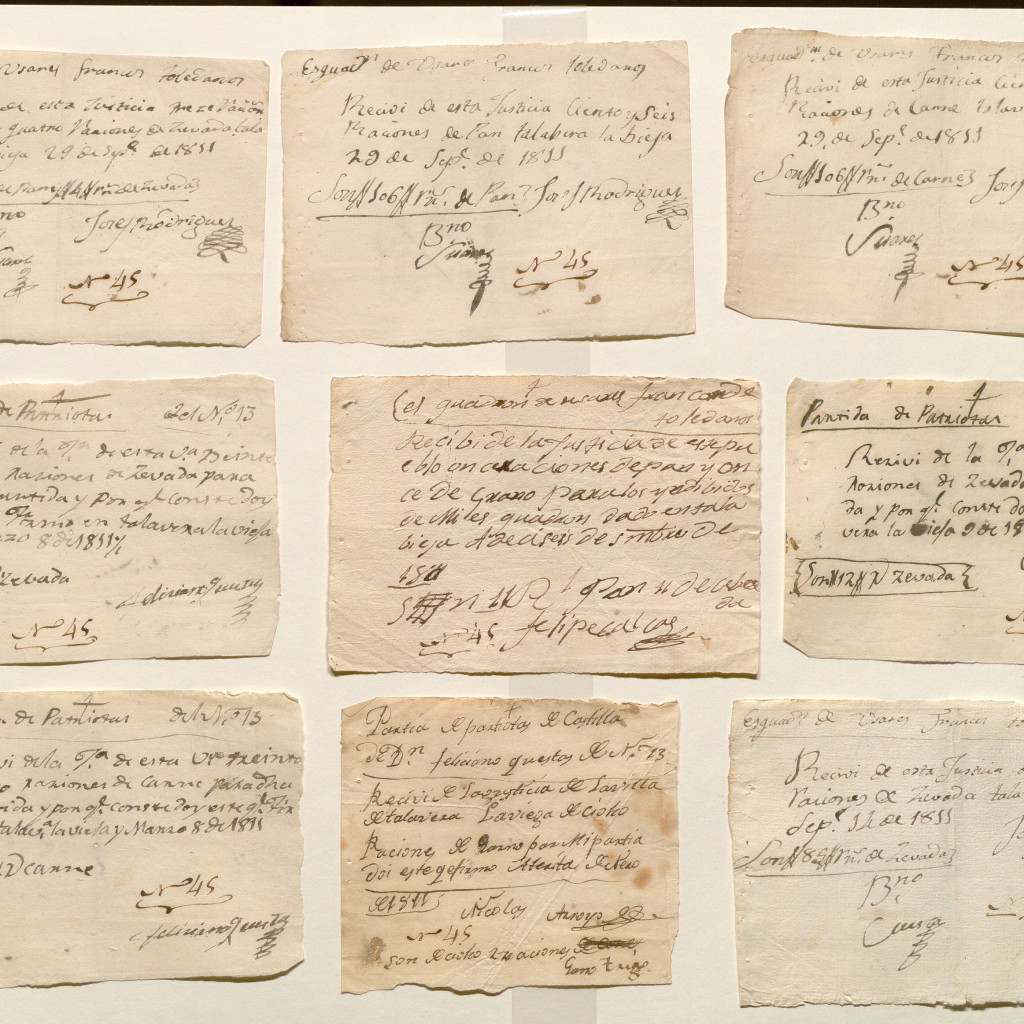 Recibos por raciones y demás provisiones para la partida de guerrilla de Don Feliciano Cuesta, también llamada escuadrón de Húsares Francos Toledanos