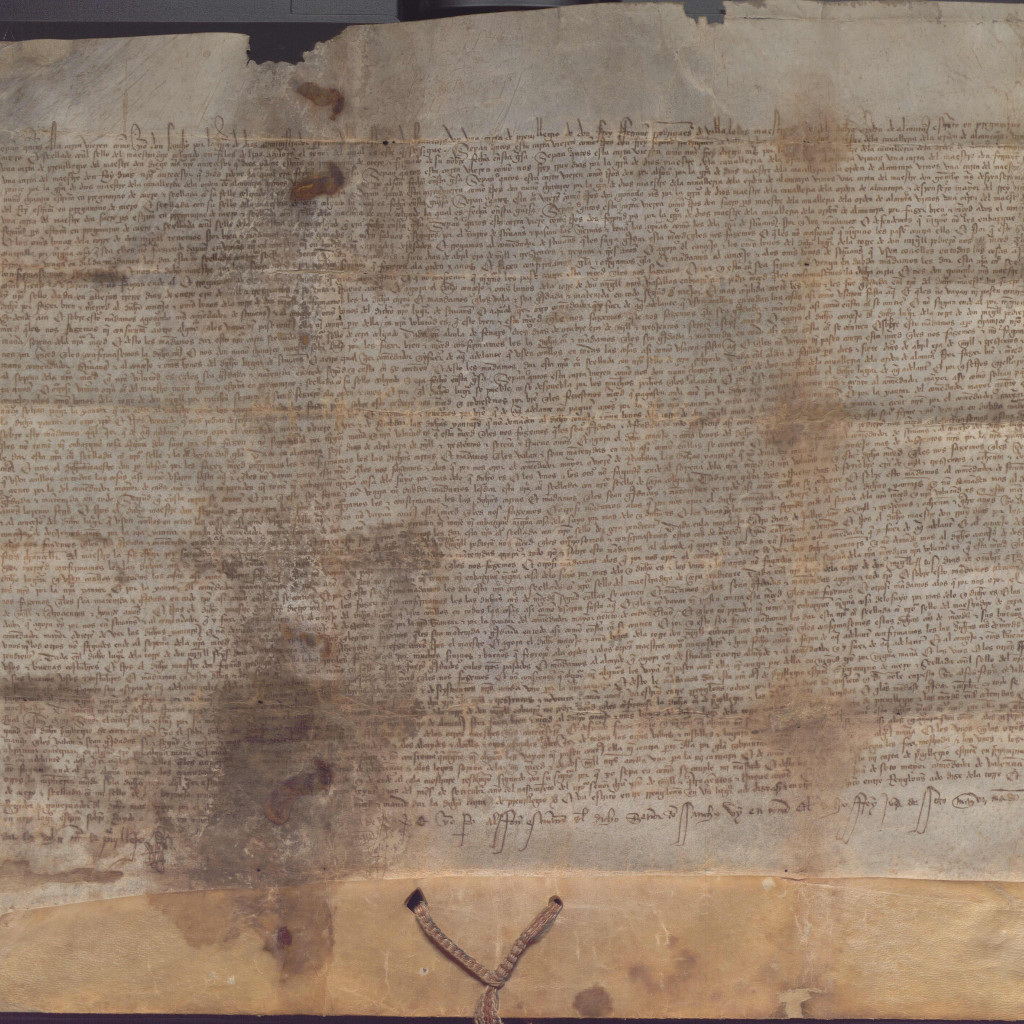 Carta de Confirmación de Privilegios de D. Fernando Rodríguez de Villalobos, maestre de la Orden de Alcántara. Confirma el Privilegio para que la villa de Torre de Don Miguel no pague mas de 200 maravedíes de Yantar al maestre de la Orden.